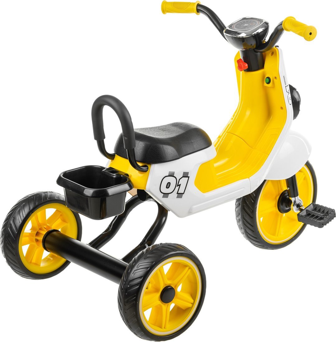 | Информация | - Детский трехколесный велосипед — идеальный выбор для первых поездок вашего малыша. Эта надежная модель предназначена для детей от 2 до 3 лет с ростом 80–90 см, что делает ее отличным вариантом для активных прогулок. Максимальная нагрузка в 25 кг обеспечивает дополнительную прочность и безопасность. - Переднее колесо диаметром 24 см и задние колеса 20 см гарантируют отличную устойчивость на различных поверхностях. Спортивное сиденье обеспечивает комфортную посадку, а высота педалей от 8 до 15 см позволяет легко вращать их, что особенно важно для маленьких велосипедистов. - Компактные размеры 75?48?59 см делают этот трехколесный велосипед удобным для хранения, а вес всего 4.3 кг облегчает его переноску. В комплекте предусмотрено багажное отделение для мелочей, две фары и передний щиток, что добавляет функциональности. - Этот трехколесный велосипед идеально подходит для прогулок во дворе, сочетая простоту управления и отличную устойчивость, что делает его незаменимым помощником в активном отдыхе вашего ребенка. |
