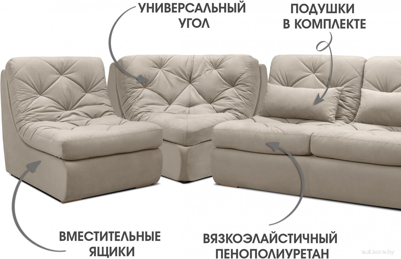 | Информация | - Модульный диван Борнео предлагает невероятный комфорт и эргономичную посадку, что делает его идеальным выбором для вашего дома. Изготовленный из высококачественных материалов, он гарантирует долговечность и надежность на многие годы. - Уникальная возможность менять расположение модулей позволяет вам создавать различные конфигурации, адаптируя диван под любые нужды и предпочтения. Благодаря специальным механизмам, все модули надежно скреплены между собой, что обеспечивает стабильность и безопасность. - В этой модели используется надежный механизм «Пума», который включает в себя телескопический синхронизатор. Он равномерно распределяет нагрузку по всему дивану, что обеспечивает плавность работы и возможность выдерживать значительные нагрузки. - Наполнение спального места выполнено из вязкоэластичного ППУ Memori foam, что создает ощущение невесомости и максимального комфорта во время отдыха. Этот модульный диван станет отличным дополнением к вашему интерьеру и обеспечит уютные моменты для всей семьи. |