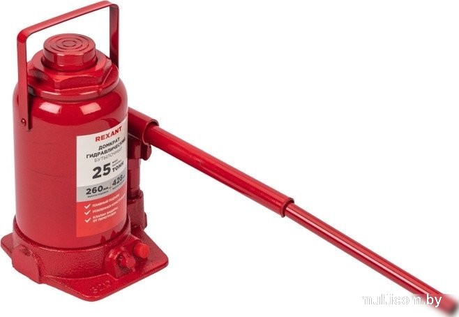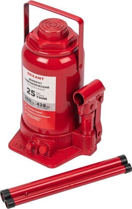 | Информация | Гидравлический бутылочный домкрат 25 т Rexant поднимает грузы массой до 25 тонн на высоту до 360 мм. Оптимален для автомобилей с большим клиренсом. Будет полезен автолюбителям при проведении технического обслуживания и ремонта, а также для профессионалов на СТО. Отличается плавностью хода, надежностью и жесткостью конструкции. Клапан безопасности не дает поднимать груз тяжелее 25 т, предохраняя домкрат от поломки. |