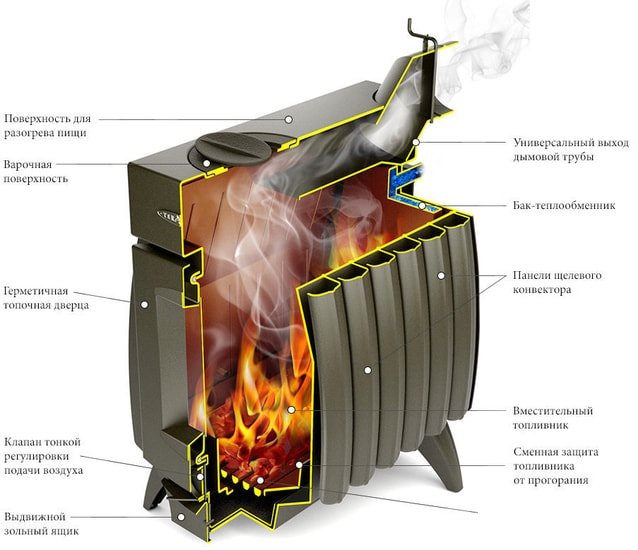 | Выход дымохода | верхний, задний |