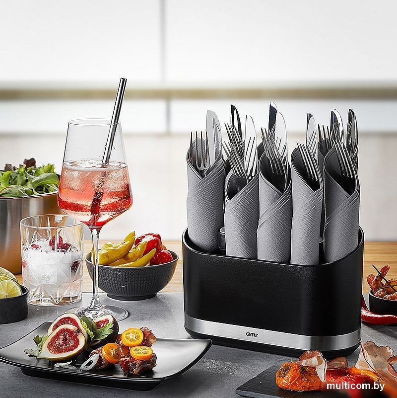 | Информация | - Стильный диспенсер для кухонных приборов с 10 отделениями. - Нескользящая основа для устойчивости и безопасности. - Съемная вставка с ячейками для легкой очистки. - Размеры: 22*10,2*14,2 см. - Изготовлен из высококачественной нержавеющей стали и пластика. - Приборы не включены. |