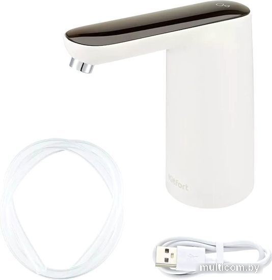| Информация | Налью свежей воды! Электрическая помпа для воды КТ-4009 предназначена для удобного перелива воды из бутыли в любую другую ёмкость. Помпа полностью автономная и предназначена для установки на стандартные 19-литровые бутыли. Вода за считанные секунды Электрическая помпа для воды КТ-4009 имеет простое управление одной сенсорной кнопкой. Есть функция автоотключения через 1 минуту. За это время помпа перекачает 1,5 л воды. Всё до последней капли! Длина силиконового шланга 60 сантиметров. Фитинг на конце силиконового шланга имеет специальные выступы. Это сделано для того, чтобы шланг не упирался в дно ёмкости и вода беспрепятственно попадала в шланг. Заменю кулер! Помпа полностью автономная и является достойной заменой кулера. Модель КТ-4009 универсальна в использовании, её можно установить на бутылки ёмкостью 5, 10 и 17 литров, если диаметр горлышка бутылки – 20-60 мм. Работает от аккумулятора Помпа для воды работает от аккумулятора и легко заряжается от Micro-USB. В комплекте с ней идёт зарядный шнур. Время полной зарядки составляет около 4,5 часов. Вы можете заряжать аккумулятор с любым уровнем разряженности. Полный комплект для безопасного использования! Помпа для воды КТ-4009 изготовлена из безопасных материалов: корпус из пластика, а всасывающий шланг из пищевого силикона. Наливать воду не только безопасно, но и просто! Подача воды происходит со скоростью 1,5 литров в минуту. |