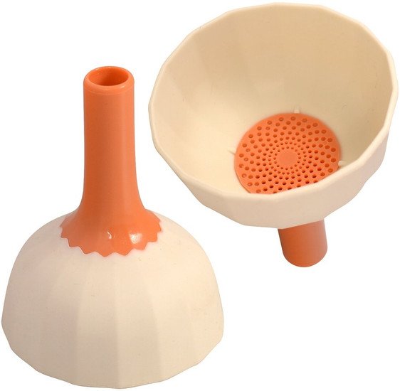 Информация | Воронка со съемным ситечком позволит аккуратно перелить жидкость или пересыпать мелкозернистые продукты в нужную емкость с узким горлышком, отфильтровав при этом все лишнее. Благодаря эластичному материалу, воронка выворачивается на изнанку и не занимает много места при хранении. |