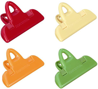 | Информация | Клипсы для пакетов непременно станут незаменимым помощником на Вашей кухне. Пригодятся как непосредственно для закрытия пакетов с кофе и различными продуктами, так и для других целей, например, как зажим для бумаги. Выполнены из пластика и на ручке имеют сквозной проем для более универсального использования. |
