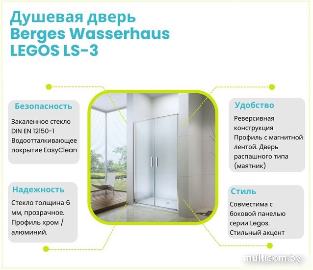 | Информация | ? Душевая дверь - стильное и функциональное решение для вашей ванной комнаты, обладающее высоким качеством материалов и инновационными характеристиками. ? Одной из ключевых особенностей данной двери для душа является безопасное закаленное стекло толщиной 6 мм, соответствующее стандарту DIN EN 12150-1, обеспечивающее высокую прочность и безопасность использования. ? Профиль из хромированного алюминия и металлические комплектующие придают двери изысканный внешний вид, который подчеркивает стиль вашей ванной комнаты. ? Дверь для душа имеет распашной тип открывания (маятник) и оснащена моно петлями с поворотно-подъемным механизмом, обеспечивающим плавное и бесшумное открывание и закрывание. ? Приобретая эту модель, вы получаете не только функциональный элемент для вашего душа, но и элегантный акцент, который придаст изысканности вашему интерьеру. |