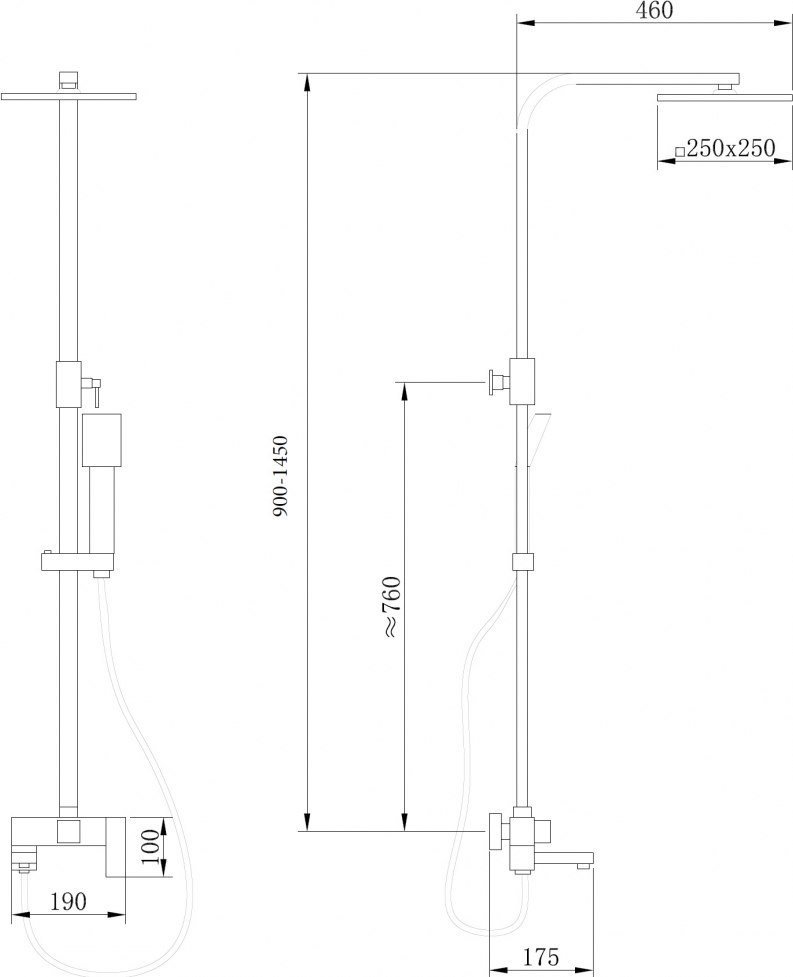 | Диаметр (ширина) верхнего душа | 250 мм |