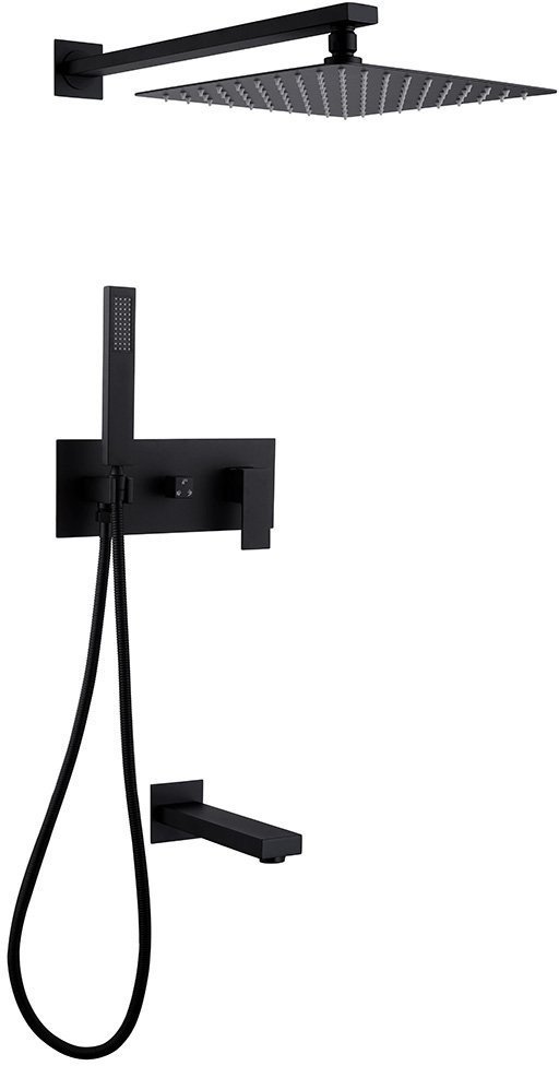 | Комплектация | верхний душ, ручной душ (лейка), держатель лейки, шланг, смеситель, излив для ванны |