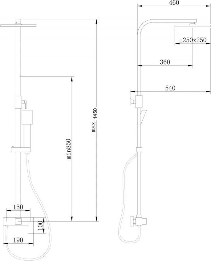 | Диаметр (ширина) верхнего душа | 250 мм |