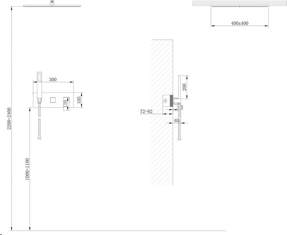 | Диаметр (ширина) верхнего душа | 400 мм |