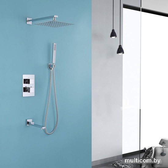 | Комплектация | верхний душ, ручной душ (лейка), держатель лейки, шланг, смеситель, излив для ванны |