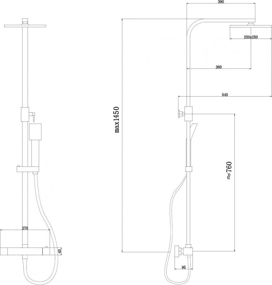 | Диаметр (ширина) верхнего душа | 250 мм |