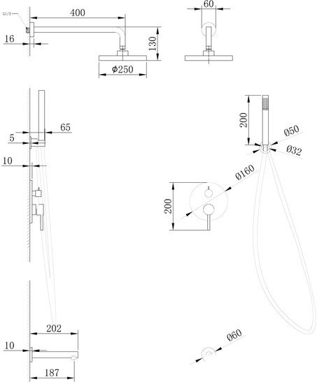 | Диаметр (ширина) верхнего душа | 250 мм |