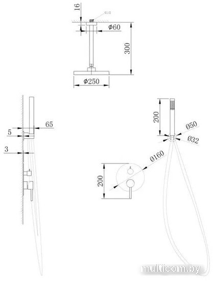 | Диаметр (ширина) верхнего душа | 250 мм |