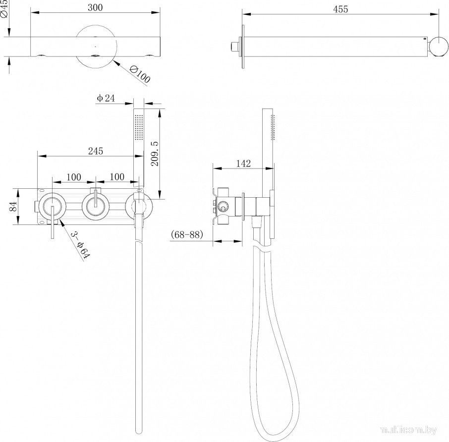 | Комплектация | верхний душ, ручной душ (лейка), шланг, смеситель |