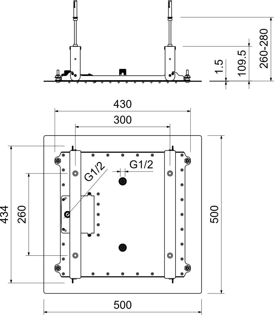 | Диаметр (ширина) верхнего душа | 500 мм |