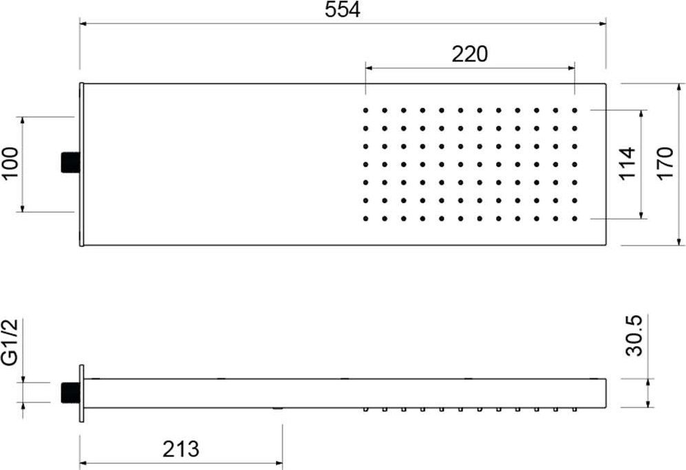 | Диаметр (ширина) верхнего душа | 550 мм |