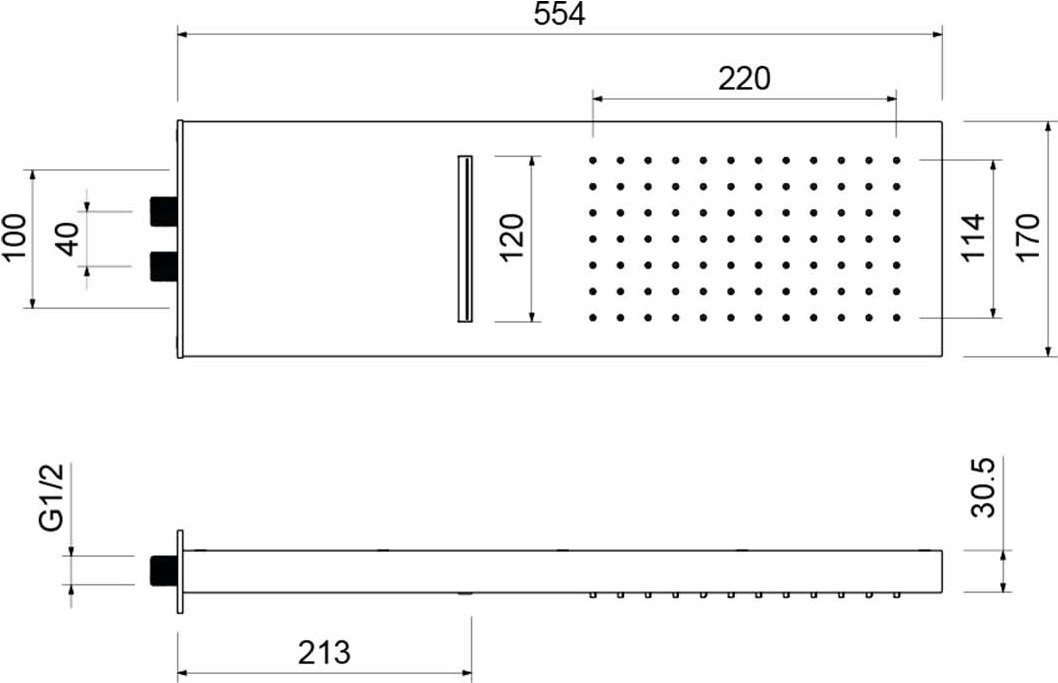 | Форма верхнего душа | прямоугольная |