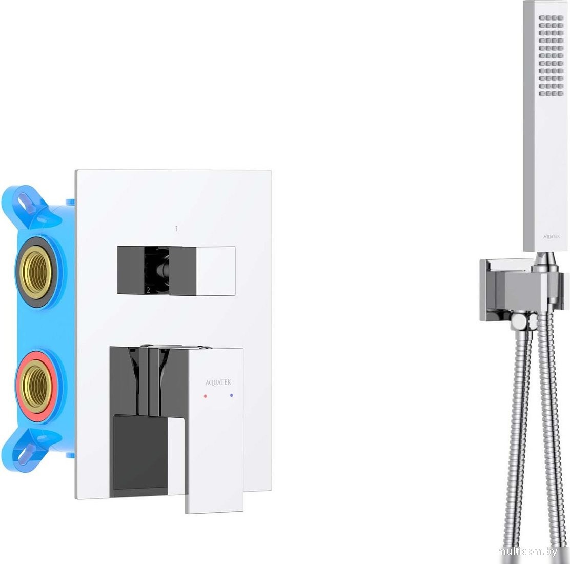 | Комплектация | верхний душ, ручной душ (лейка), держатель лейки, шланг, смеситель, излив для ванны |