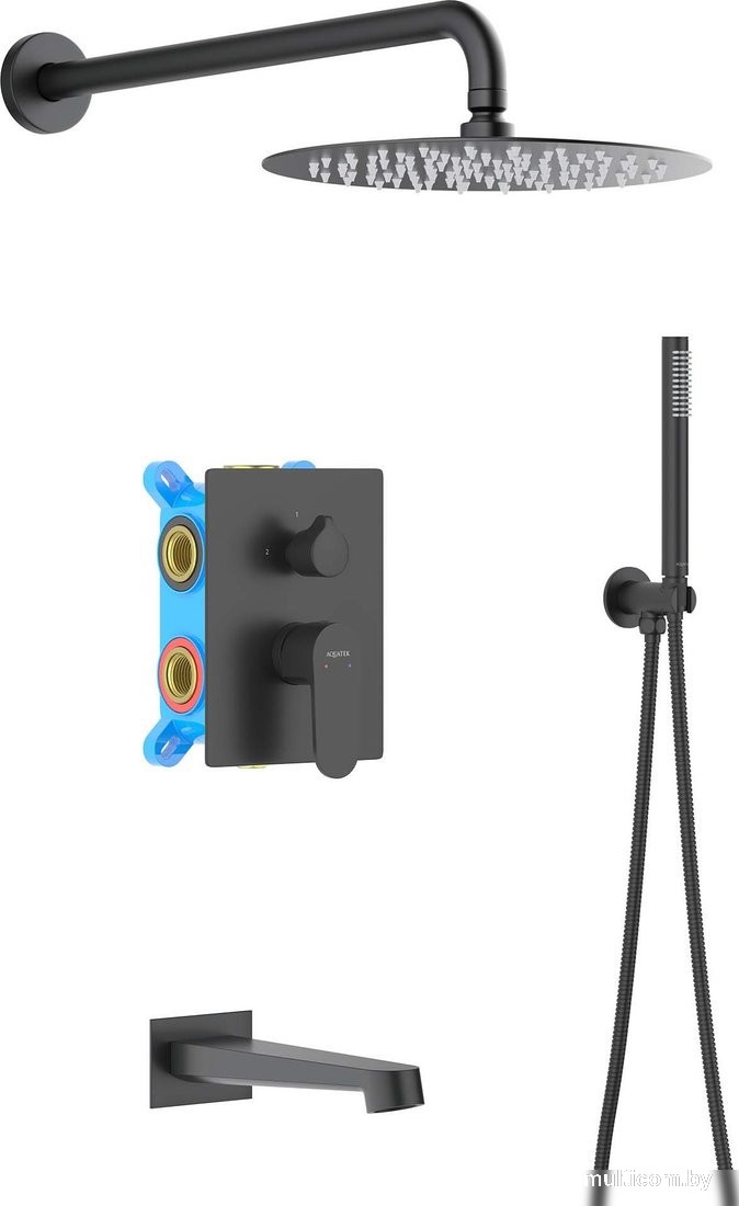 | Комплектация | верхний душ, ручной душ (лейка), держатель лейки, шланг, смеситель |