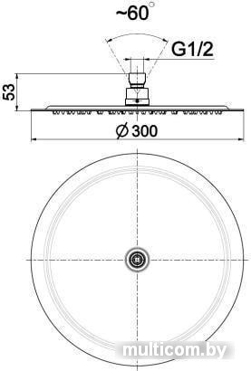 | Диаметр (ширина) верхнего душа | 300 мм |