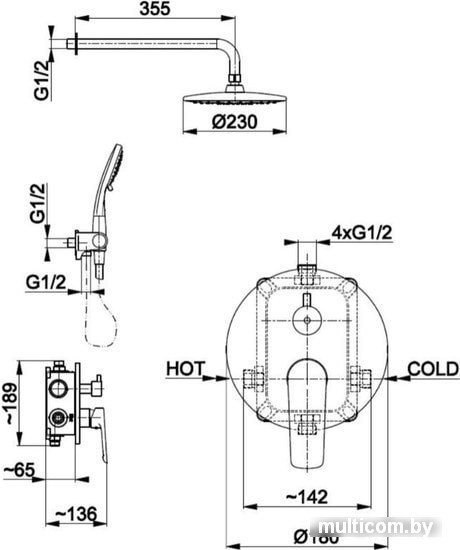| Диаметр (ширина) верхнего душа | 230 мм |