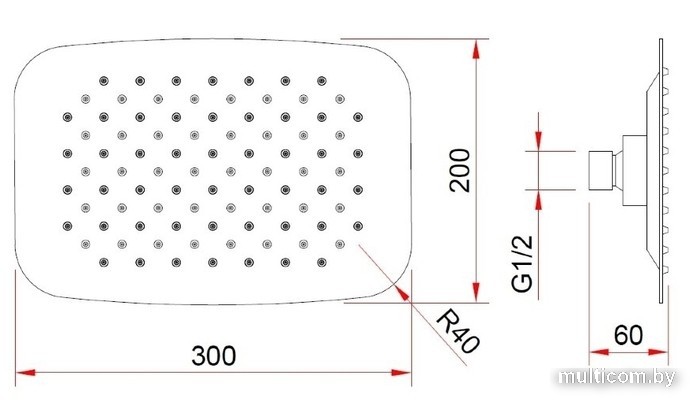 | Диаметр (ширина) верхнего душа | 300 мм |