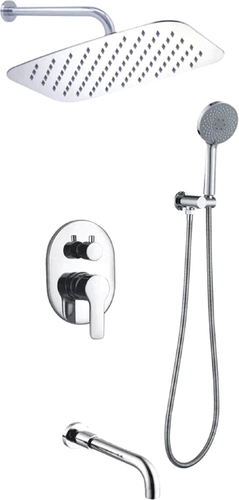| Комплектация | верхний душ, ручной душ (лейка), держатель лейки, шланг, смеситель, излив для ванны |