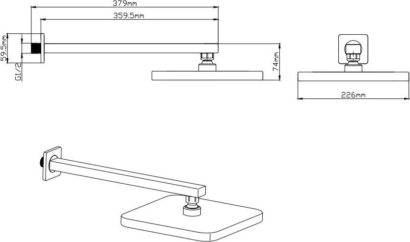 | Диаметр (ширина) верхнего душа | 226 мм |