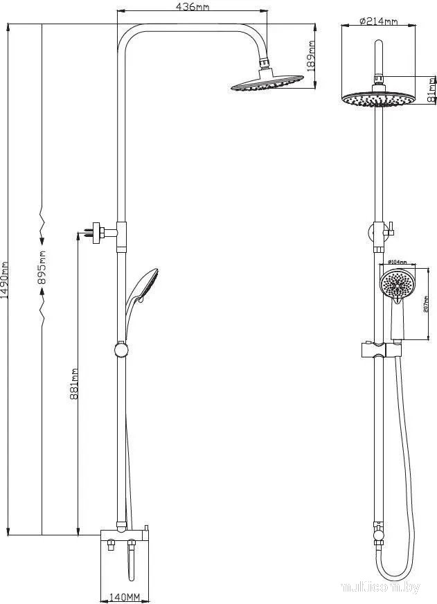 | Диаметр (ширина) верхнего душа | 214 мм |