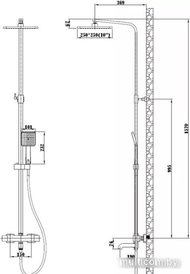 | Комплектация | верхний душ, штанга, ручной душ (лейка), держатель лейки, шланг, смеситель, излив для ванны |