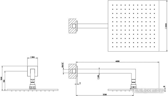 | Диаметр (ширина) верхнего душа | 300 мм |