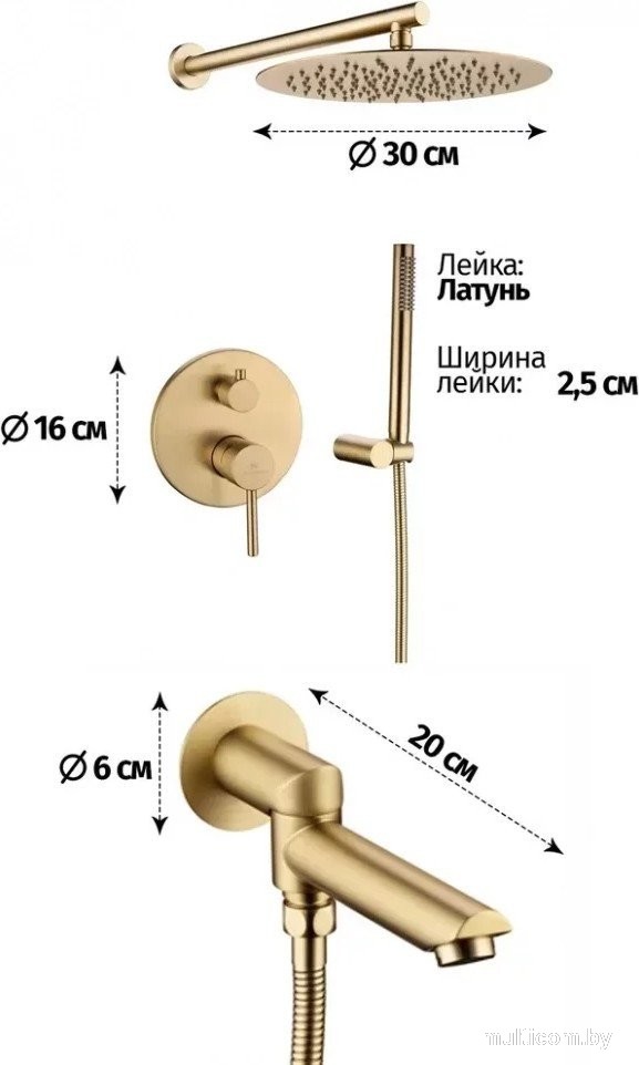 | Комплектация | верхний душ, ручной душ (лейка), шланг |