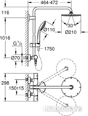 | Диаметр (ширина) верхнего душа | 210 мм |
