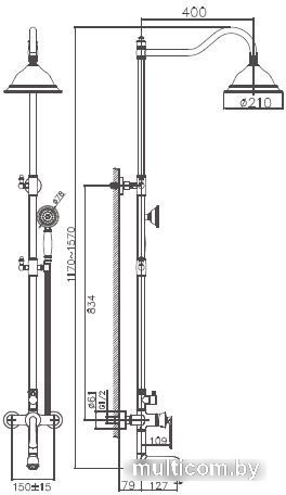 | Диаметр (ширина) верхнего душа | 210 мм |