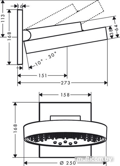 | Диаметр (ширина) верхнего душа | 250 мм |