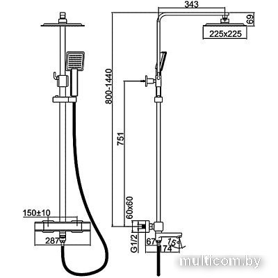 | Комплектация | верхний душ, штанга, ручной душ (лейка), держатель лейки, шланг, смеситель, излив для ванны |