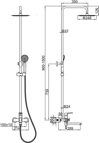 | Диаметр (ширина) верхнего душа | 248 мм |