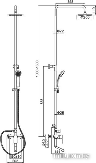 | Комплектация | верхний душ, штанга, ручной душ (лейка), держатель лейки, шланг, смеситель, излив для ванны |