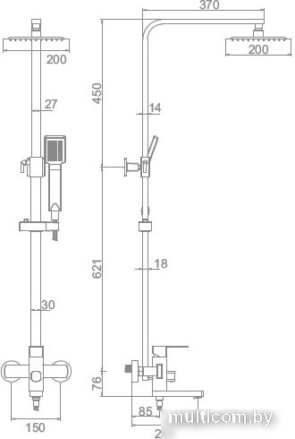 | Диаметр (ширина) верхнего душа | 200 мм |