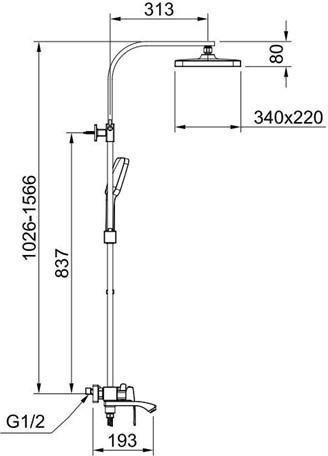 | Комплектация | верхний душ, штанга, ручной душ (лейка), держатель лейки, шланг, смеситель, излив для ванны |