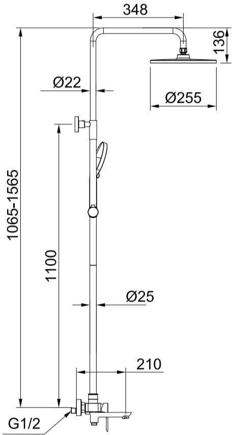 | Диаметр (ширина) верхнего душа | 255 мм |