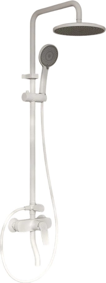 Комплектация | верхний душ, штанга, ручной душ (лейка), держатель лейки, шланг, смеситель, излив для ванны |