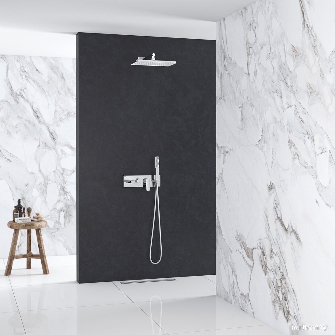 | Комплектация | верхний душ, ручной душ (лейка), держатель лейки, шланг, смеситель, излив для ванны |