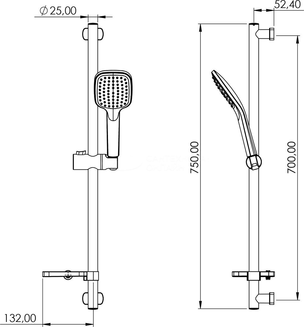 | Комплектация | штанга, ручной душ (лейка), держатель лейки, шланг, мыльница или держатель для мыла, полочка |