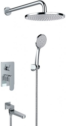 | Комплектация | верхний душ, ручной душ (лейка), держатель лейки, шланг, смеситель, излив для ванны |