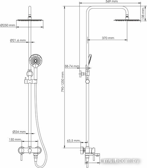 | Диаметр (ширина) верхнего душа | 250 мм |