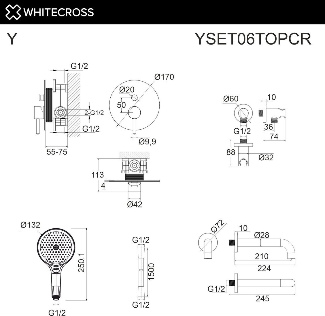 | Диаметр (ширина) ручного душа | 132 мм |