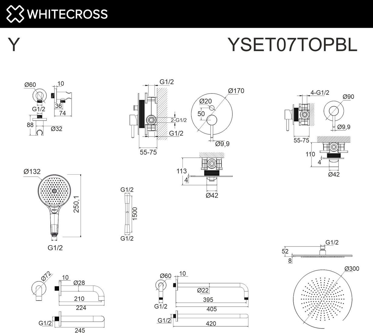 | Диаметр (ширина) верхнего душа | 300 мм |