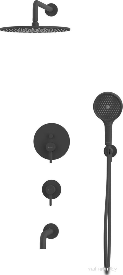 | Комплектация | верхний душ, ручной душ (лейка), держатель лейки, шланг, смеситель, излив для ванны |