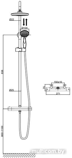 | Диаметр (ширина) ручного душа | 100 мм |